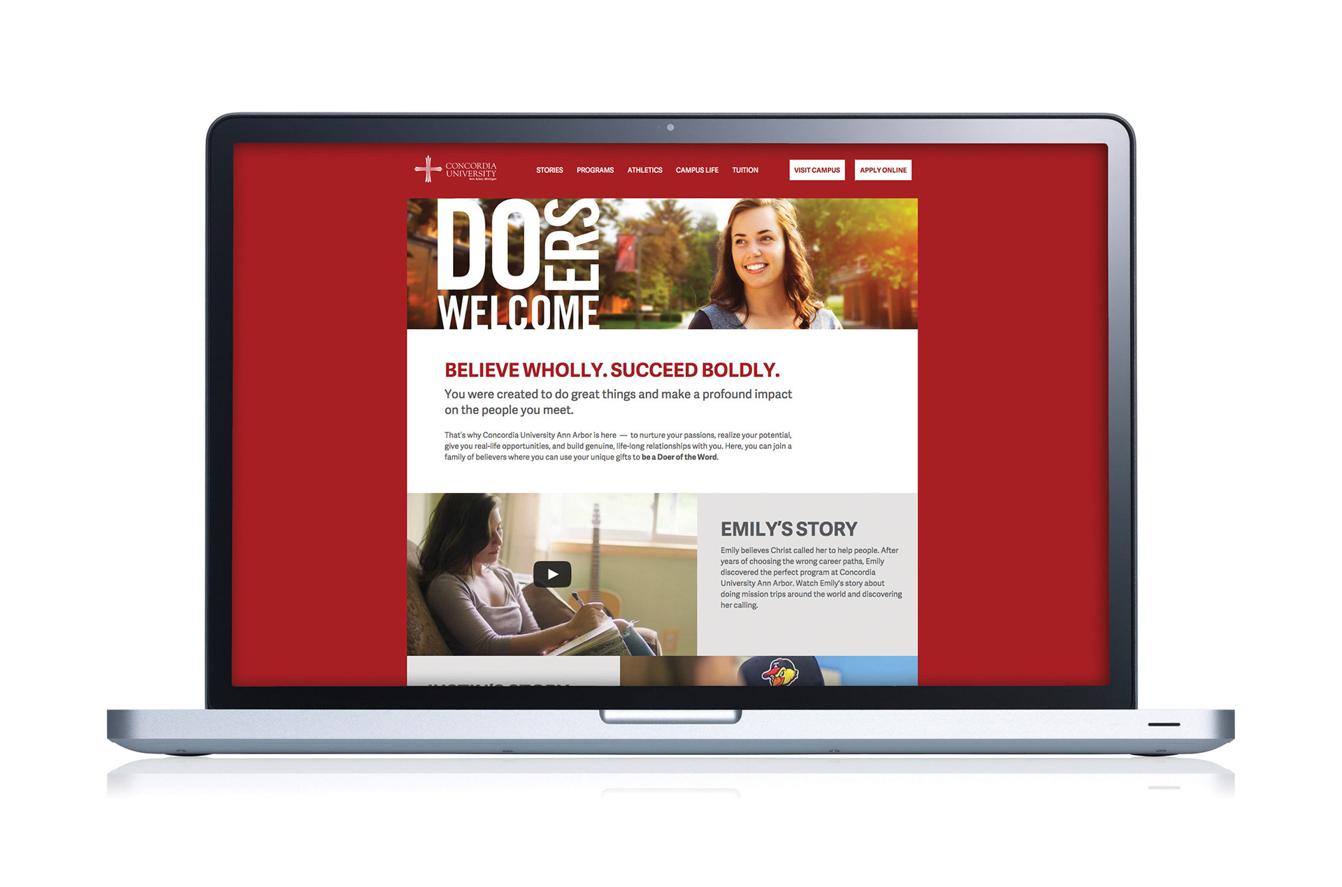 Concordia University Ann Arbor is a small, private liberal arts college that is often overshadowed by its larger, famous neighboring universities. To increase visits and enrollment, we needed to highlight the differentiators of a small Christian college.